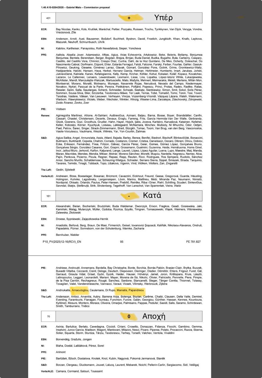 Σύσσωμη η κοινοβουλευτική ομάδα του ΠΑΣΟΚ στο ευρωκοινοβούλιο καταψήφισαν τα μέτρα της Mercosur.