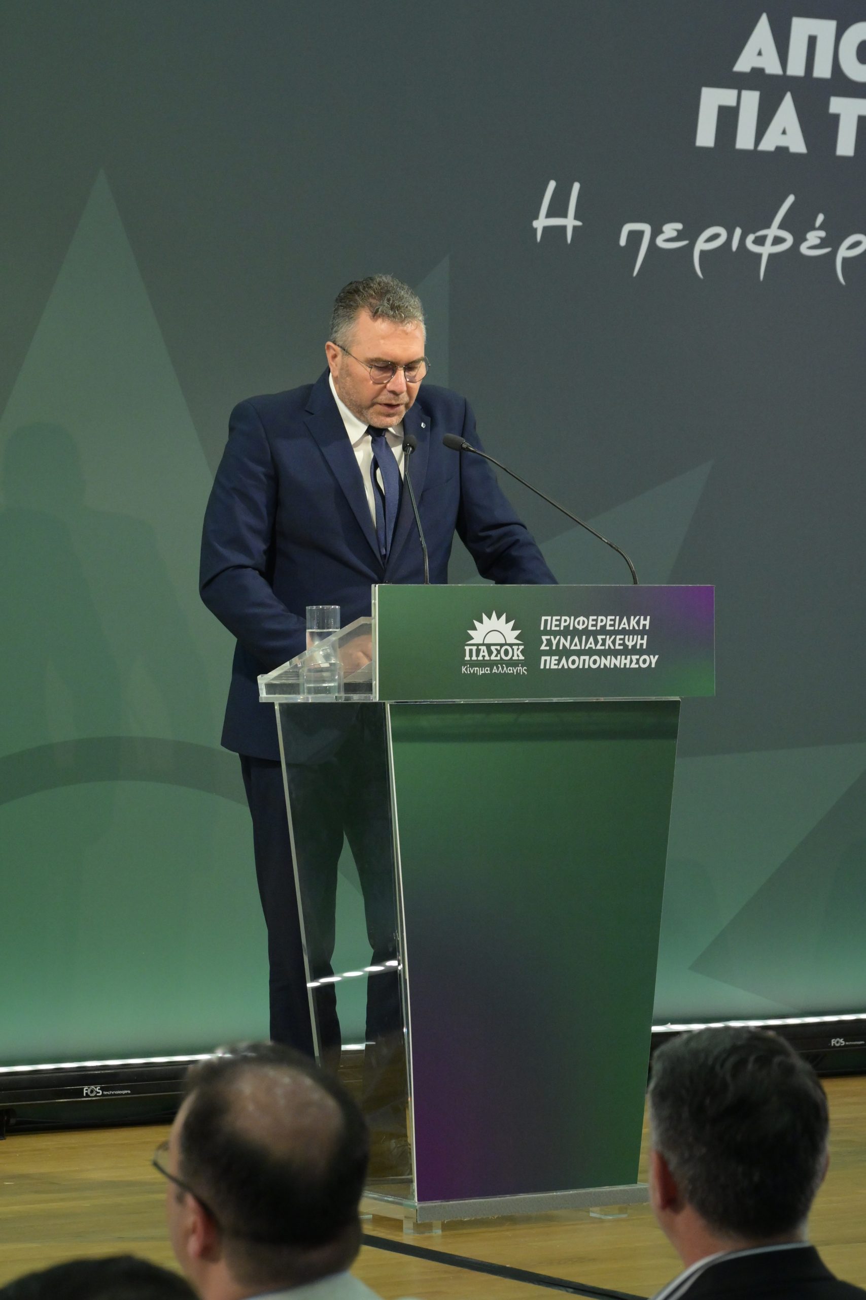 Ο αντιδήμαρχος Βασίλης Βαρδιάμπασης εκπροσωπώντας τον Δήμαρχο Τρίπολης, κατά τον χαιρετισμό του, αναφέρθηκε στην πρόκληση που αντιμετωπίζει η περιοχή, λέγοντας ότι «είναι δύσκολο να βρεθούν χέρια που θα δουλέψουν τη γη, αν δεν στηριχθεί η αγροτική επιχειρηματικότητα, αν δεν βελτιωθούν υποδομές και δεν δοθούν φορολογικές ελαφρύνσεις και άλλα κίνητρα για την εγκατάσταση του πληθυσμού στην περιφέρεια». Επισήμανε την ανάγκη στήριξη των υποδομών και υλοποίηση έργων -πυλώνων, υπογραμμίζοντας ότι «το ΠΑΣΟΚ θέλει σήμερα να μας ακούσει. Είστε όλοι εδώ για να μιλήσετε αληθινά, να αναδειχθούν τα προβλήματα της περιφέρειάς μας και να δοθούν λύσης που τις αξίζουν. Εύχομαι οι εργασίες της παρούσας συνδιάσκεψης να στεφθούν με απόλυτη επιτυχία και να ενισχύσουν την προσπάθεια όλων μας για ένα καλύτερο μέλλον στην περιφέρεια».